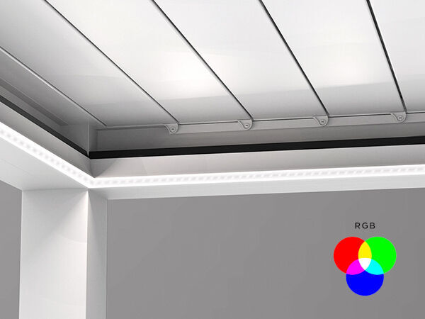 LED světla integrovaná uvnitř lamel 4000K bílá LED, po celém obvodu Obvodová LED v barevném režimu RGB
