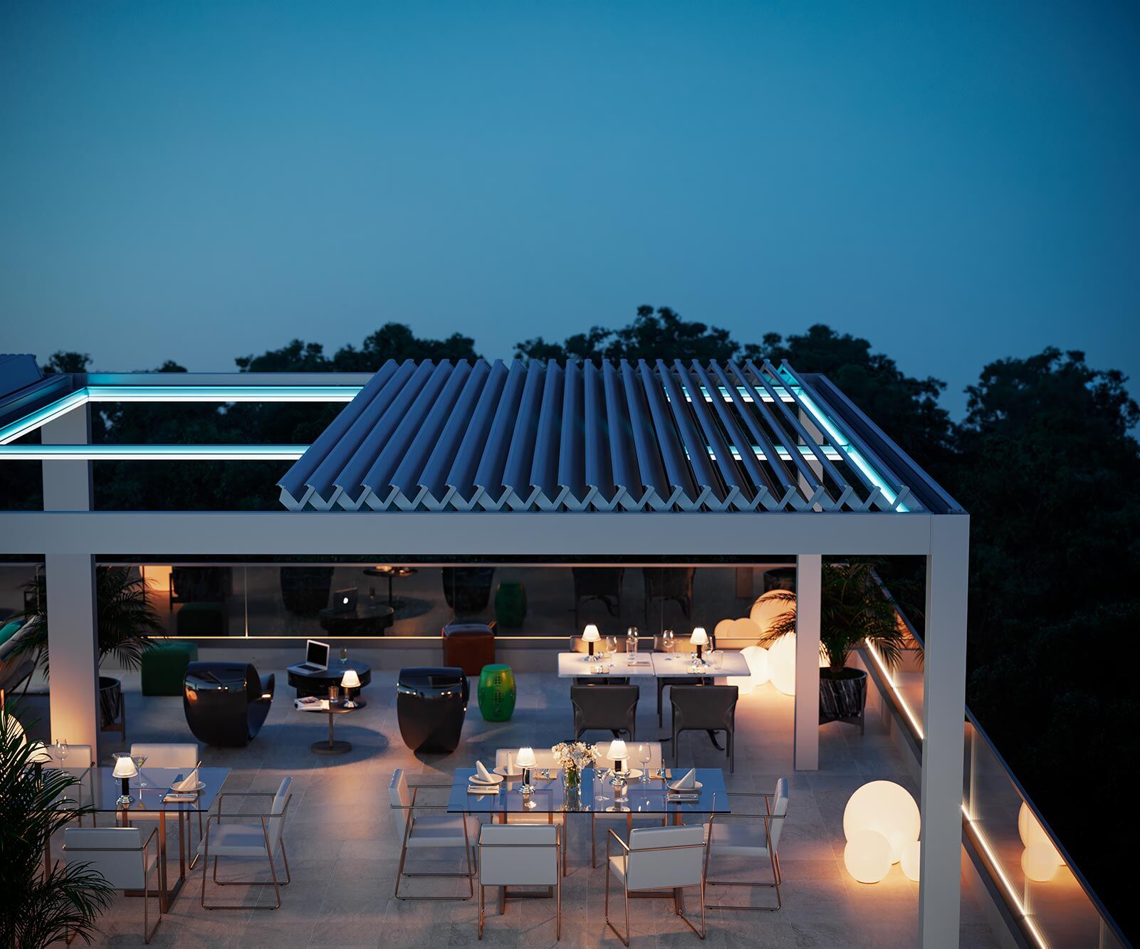 Užijte si svoji pergolu i v noci. Inteligentní systém osvětlení umožňuje naprogramovat zapnutí