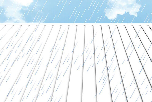 Ochrana před deštěm. Voda se shromažďuje po obvodu a odvádí ve sloupech.
