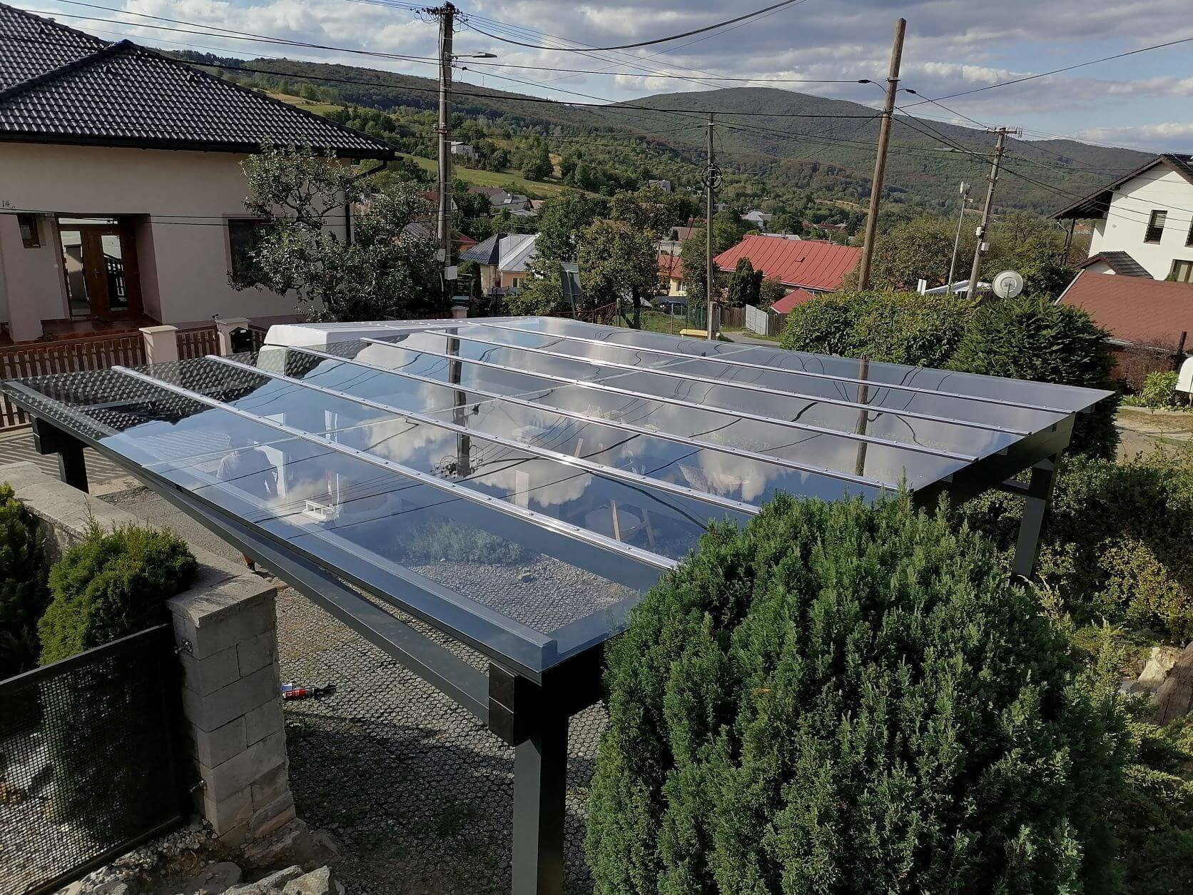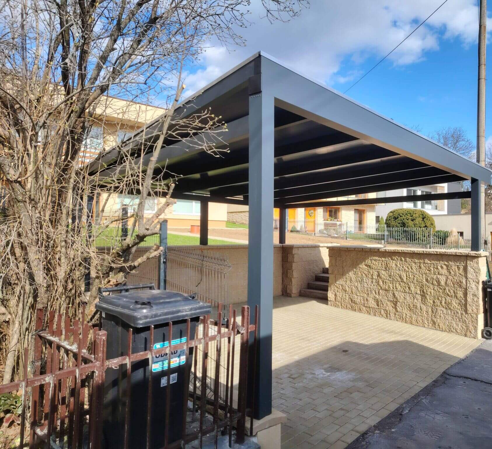Odolná přístřešková konstrukce vytváří spolehlivé krytí pro auto a chrání jej před deštěm, sněhem i silným sluncem. Promyšlený systém odvádění vody udrží prostor suchý a pohodlný bez ohledu na roční období.
